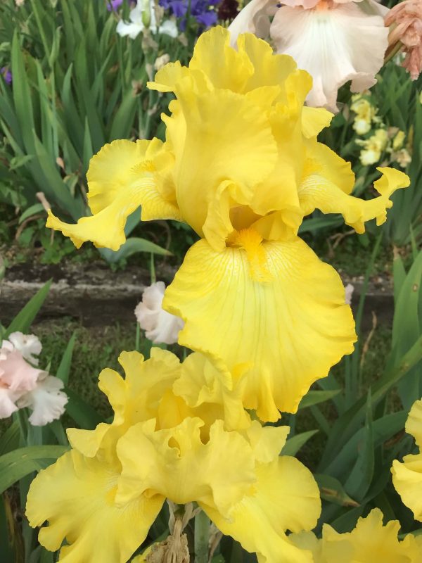 Registered by Bryan Dodsworth in 2006, one of his last. Ruffled yellow self; beards yellow, tipped paler. Height 44″ (112 cm).